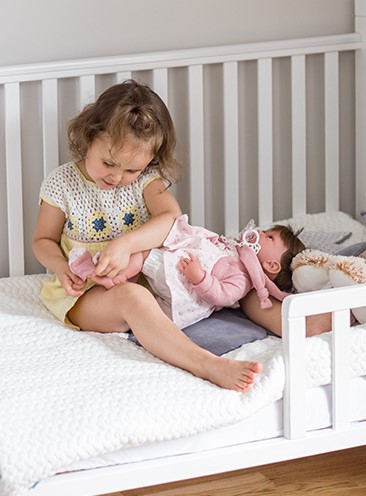 Do łóżeczka dołączone są dwie plastikowe nakładki, które zabezpieczają jego górną krawędź przed ząbkami Twojego dziecka.