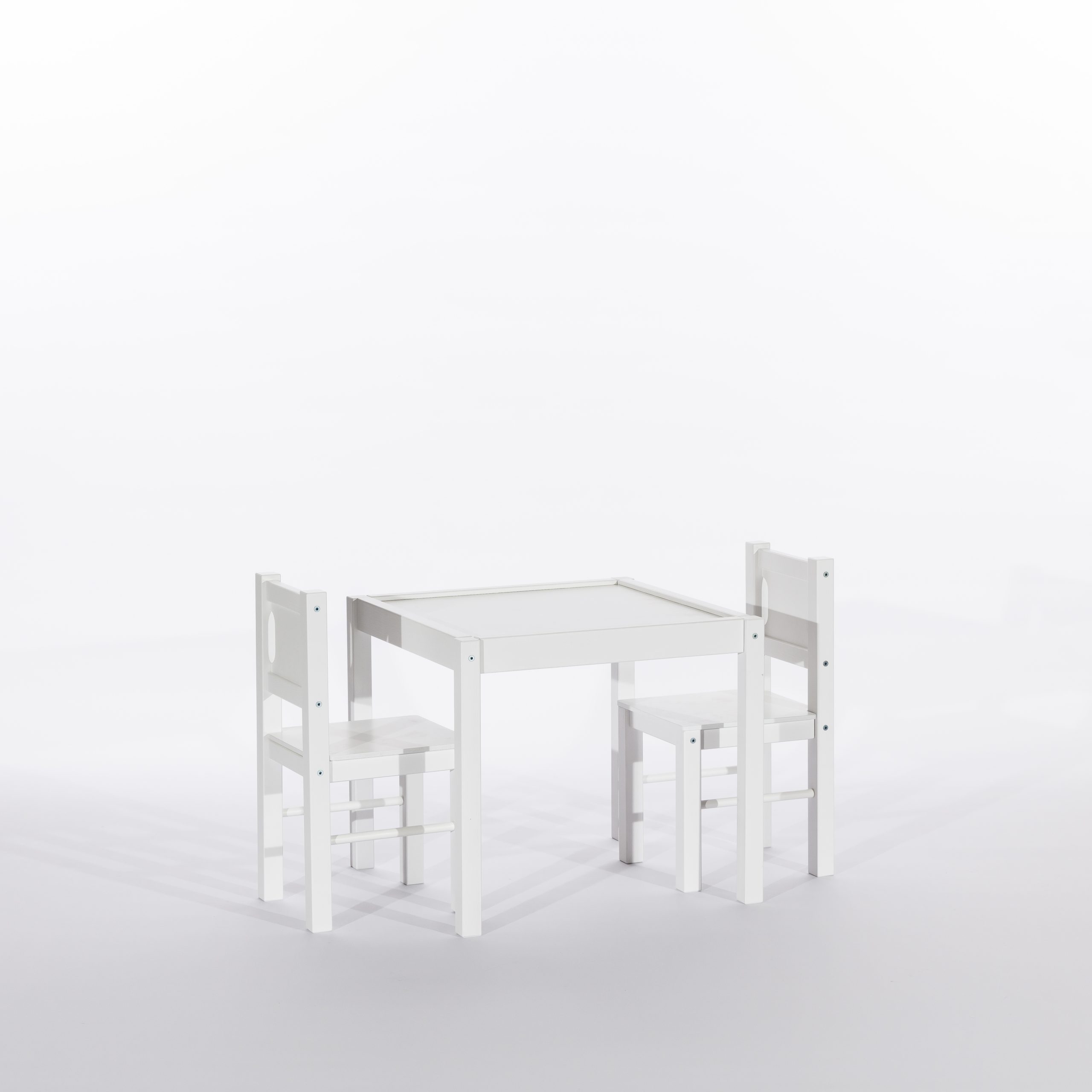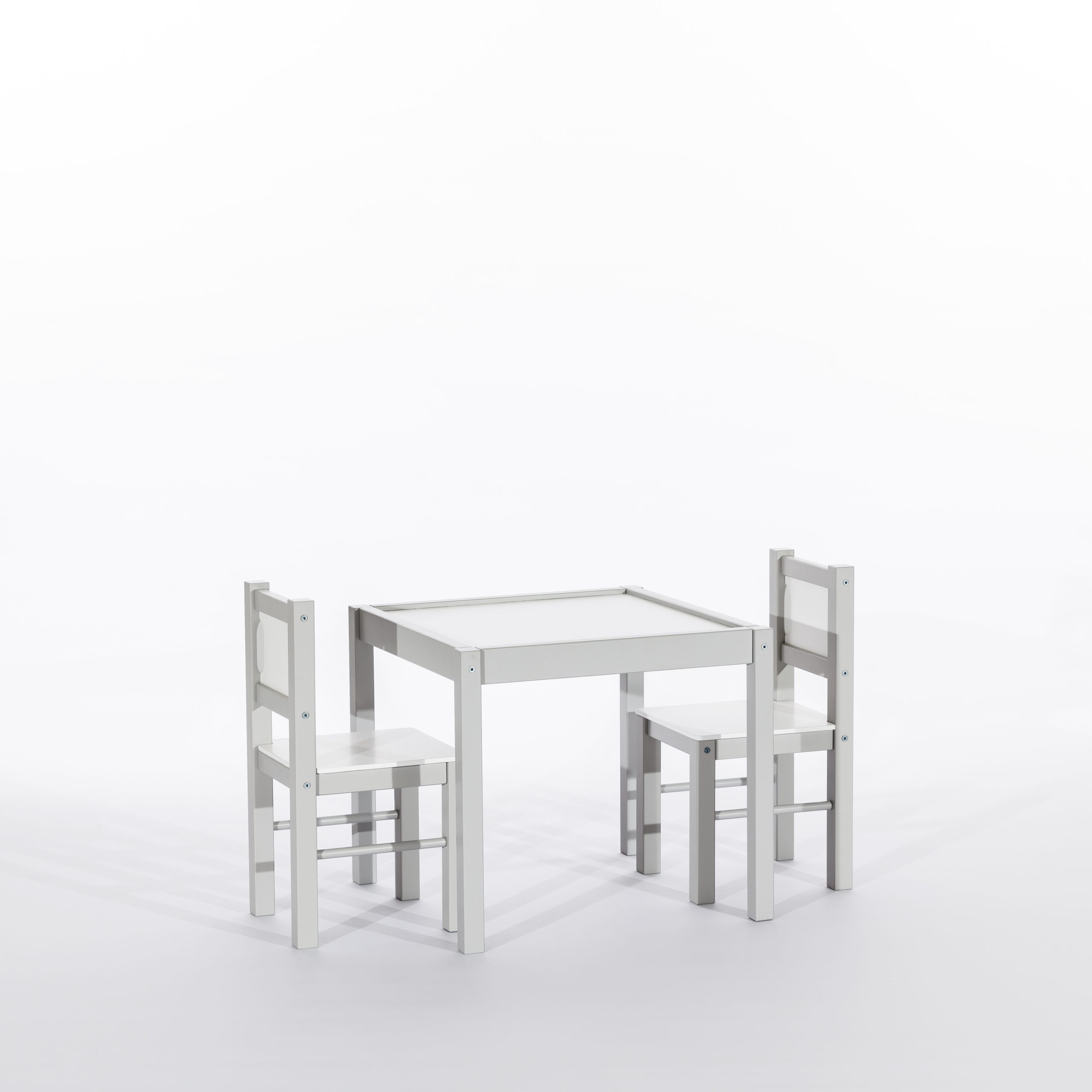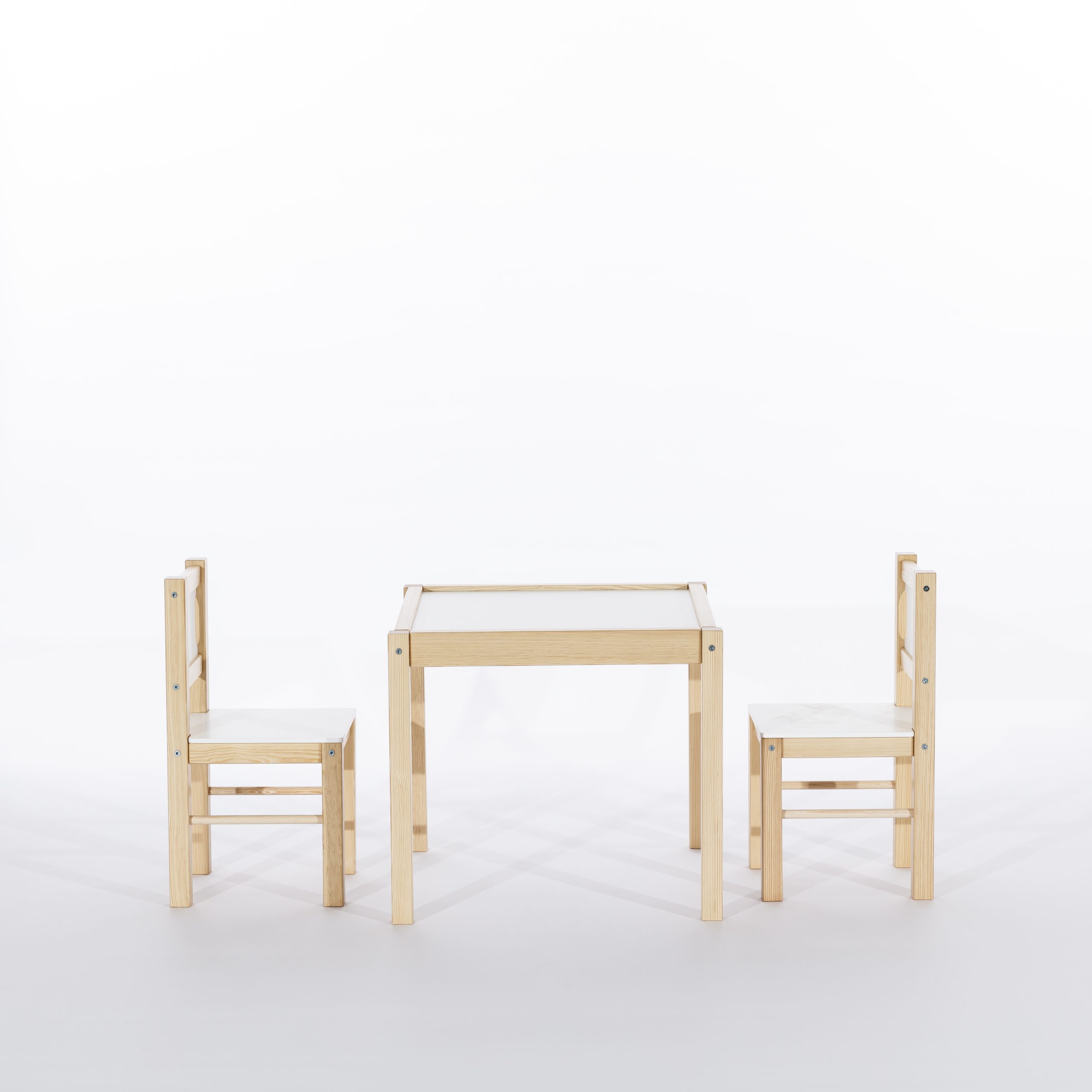 Zestaw Mebelków stolik i 2 krzesła został w całości wyprodukowany w Polsce. Solidna drewniana konstrukcja uzupełniona elementami z płyty wiórowej zapewnia trwałość na lata. Sam projekt został przemyślany tak, by idealnie wpasować się w każde wnętrze.